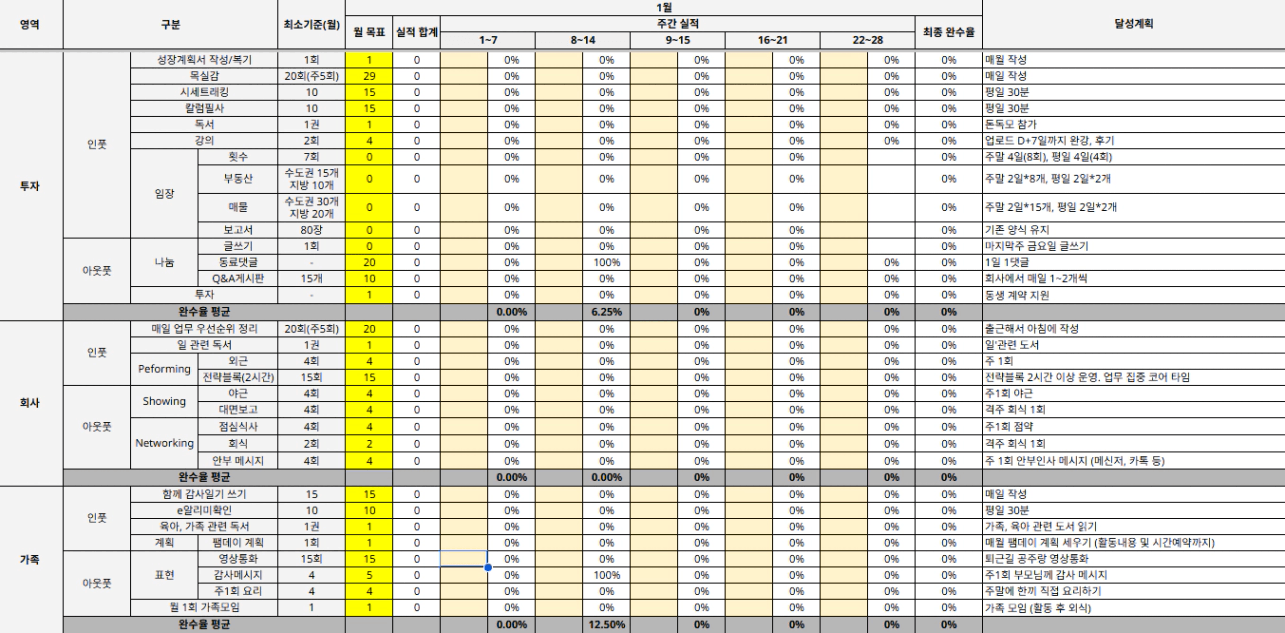 (T) 목표에 맞는 행동값에 적응하기, 1월 하반기 복기 주간 설정