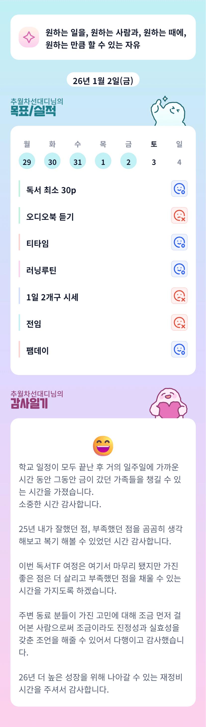 조장님~ 더더더 높이 성장할 26년도 응원드려요! 새해 복 많이 받으세요 ㅎ