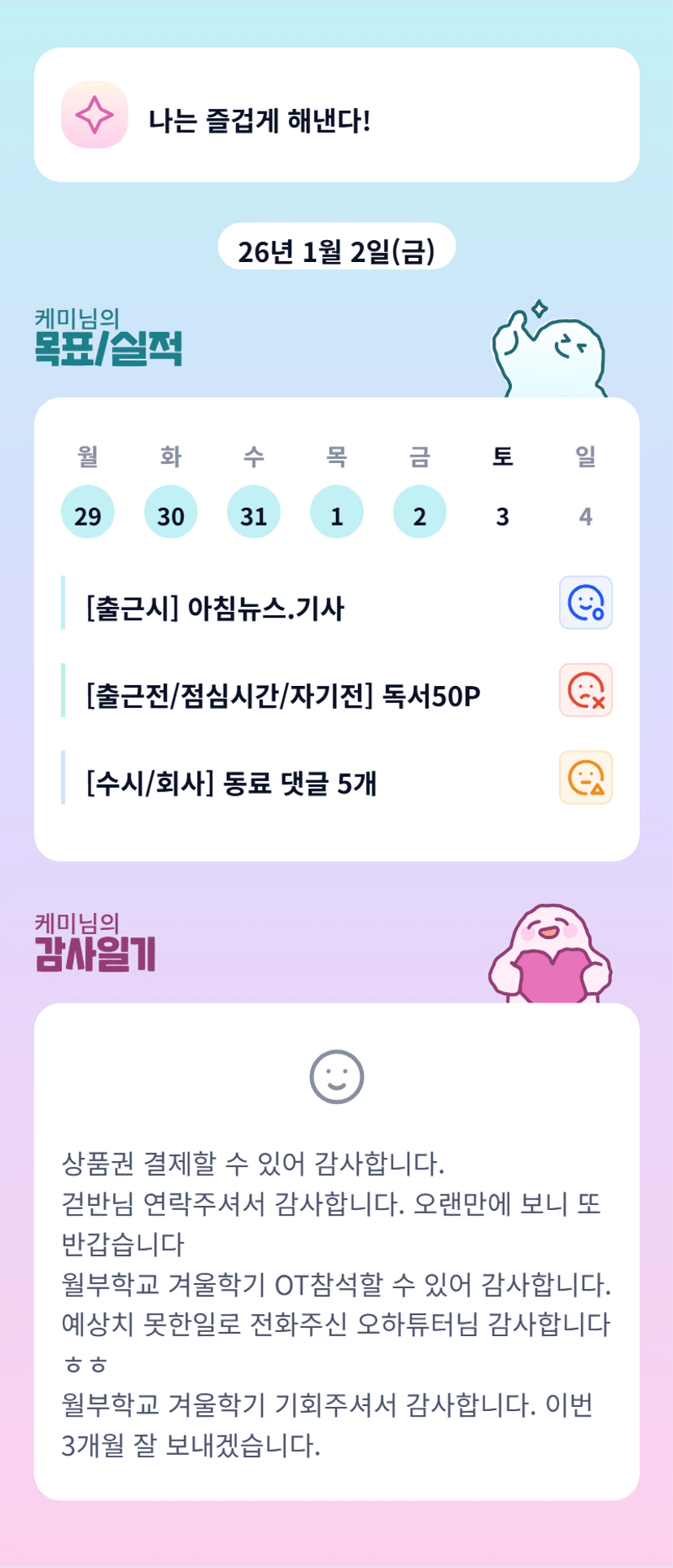 케미님 3달간 잘 부탁드립니다 ㅎㅎ 화이팅!!