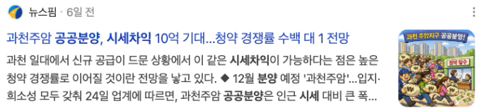 예를 들어, 과천주암지구의 경우 큰 시세차익까지 기대해볼 수 있는 분양이지만