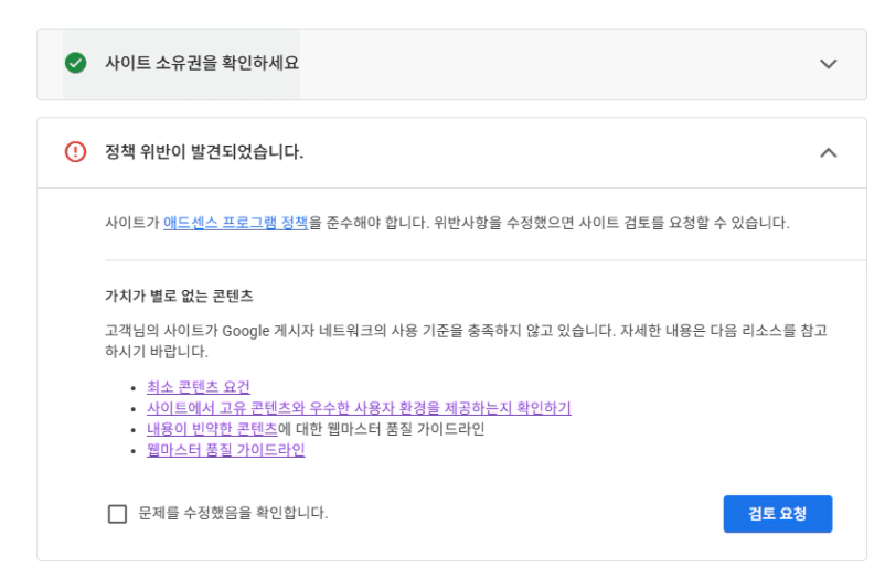 ‘가치가 별로 없는 콘텐츠’라는 승인거절 안내를 받은 지금