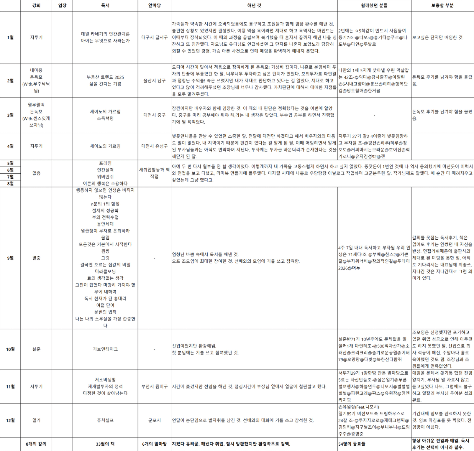 임장을 못가는 달에는 독서량을 늘리고 반드시 매임 보충을 한다.