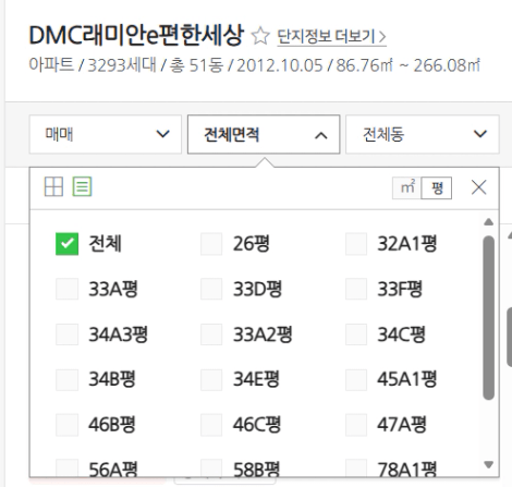 ex. 동일평형 내에도 타입이 많은 케이스 - DMC래미안e편한세상 ;;;;;;;;;;;;;;;;;;;;;;;;;;;;;;