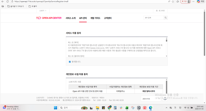 API키값 확인하려는데 강의 화면과 다르게 아래와 같이 나와서 서비스 등록 확인 탭이 보이지 않습니다.