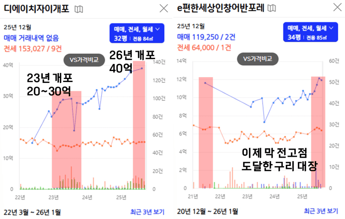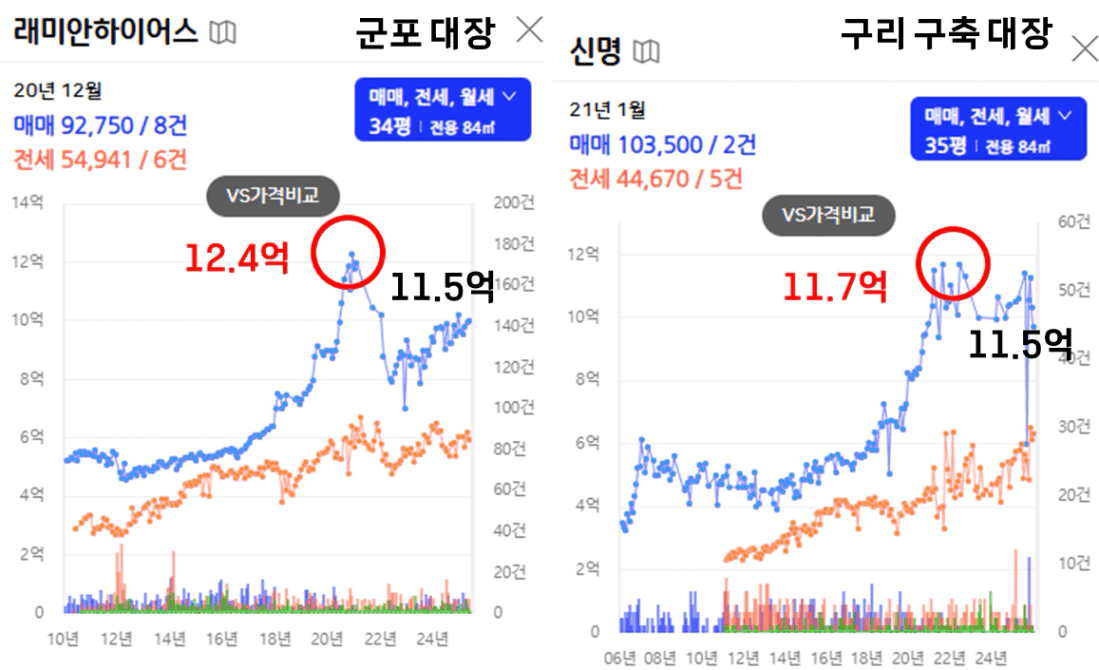 과거 전고점 레벨이 군포와 비슷했던 구리