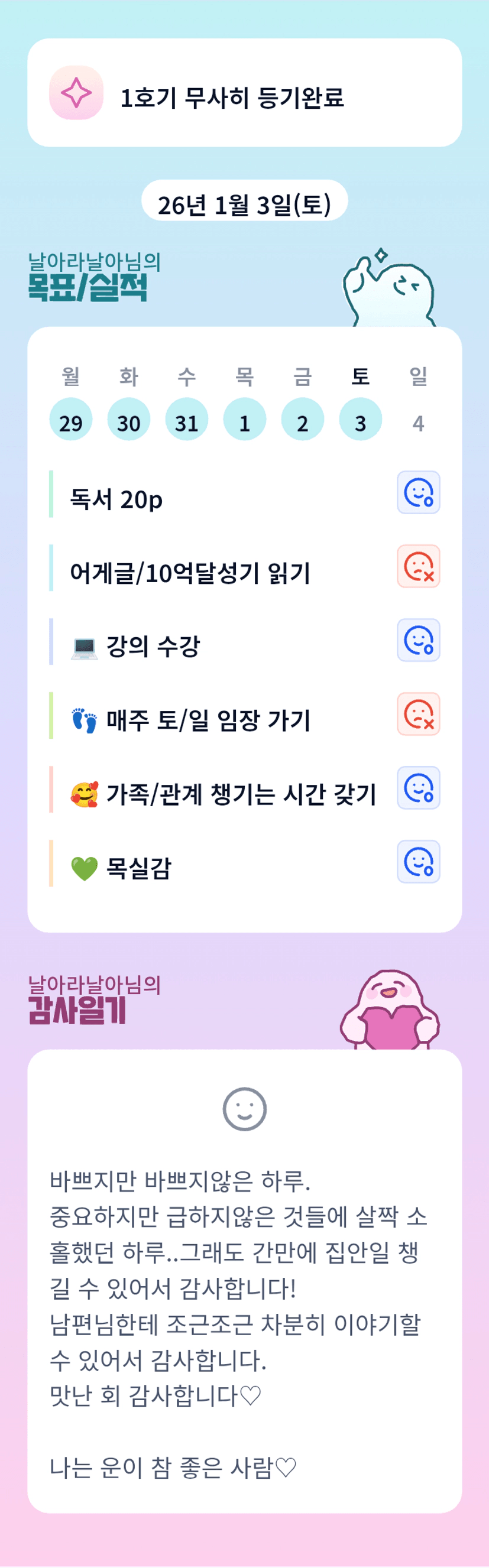 날아님~ 어제 회 맛있게 드셨나요?^^ 오늘도 고생 많으셨어요. 내일도 내일의 일상을 보내며 힘내세요:)