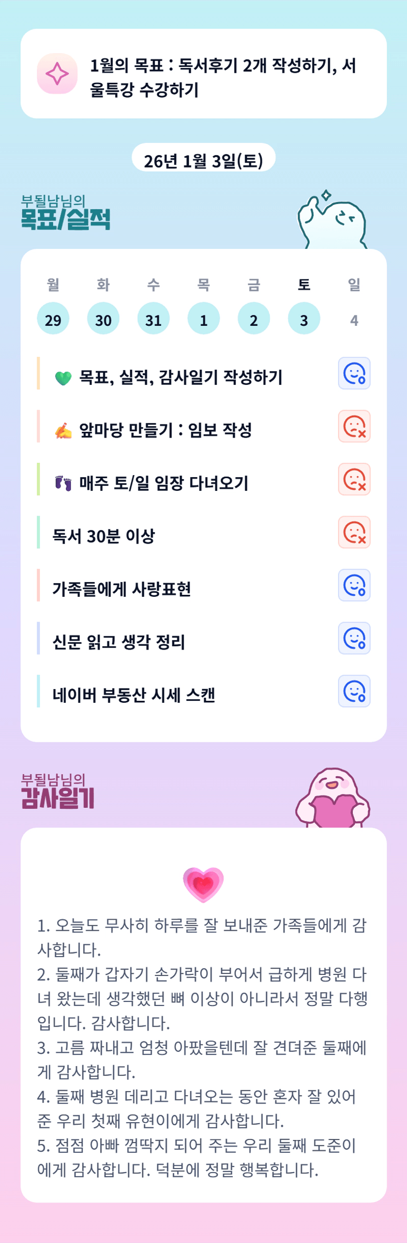 부될남님~ 오늘 많이 놀라셨을것 같아요! 뽀롱님 말처럼 엄마아빠 사랑으로 도준이 금방 나을것 같아요!🩷 오늘도 고생많으셨습니다 😊