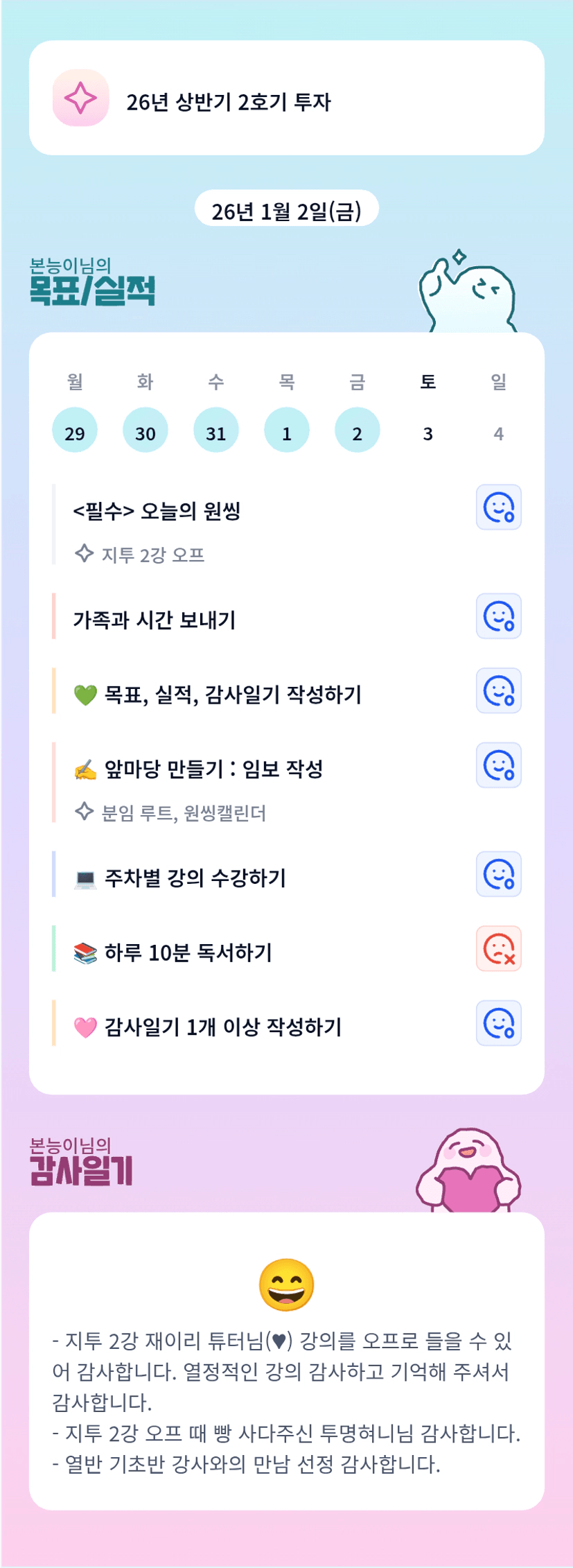 본능이님 멋지네요. 강사와의 만남 축하드립니다.^^ 오늘 하루도 수고 많이 하셨습니다.