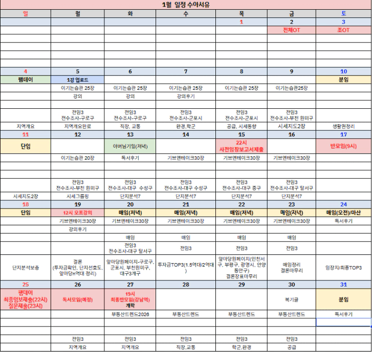 첫 월부학교 1월 계획표를 써봅니다.