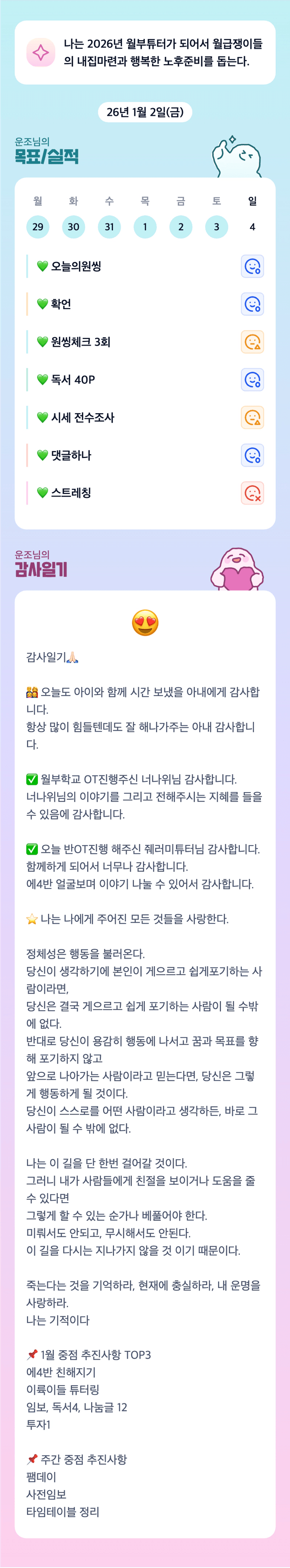 힘들어하는 동료들을 돕고, 때로는 함께 웃고 또 함께 울면서 해나가려고 합니다.