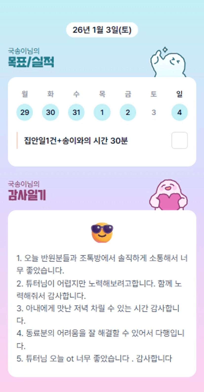 반장님 덕분에 복잡한 상황에서도 중심을 잡을 수 있었습니다. 감사합니다.