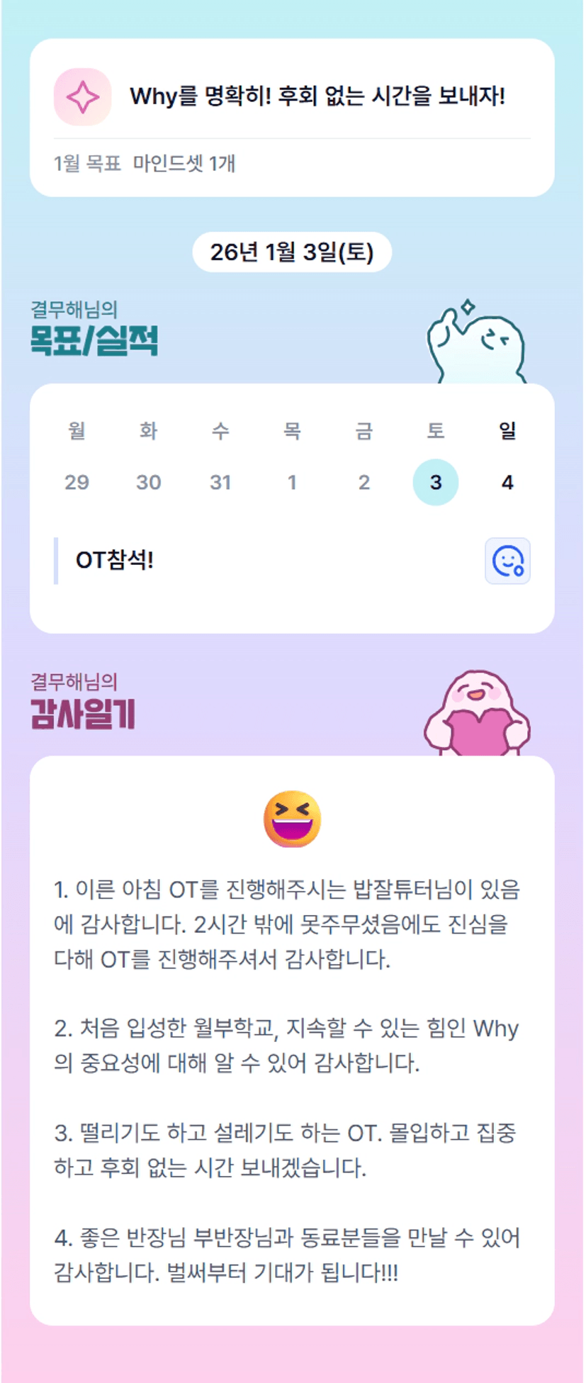 저도 떨리기도 하고 기대되기도 해요ㅎㅎ 후회없는시간 보내기 화이팅🩵