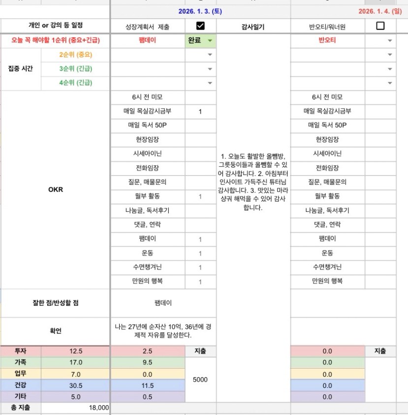 이닌님~! 한달, 그리고 매주 중점사항을 꼼꼼히 계획하고 달성하기 위해 힘쓰고 계시네요 ^^ 저도 매달, 매주, 매일 반드시 해내야 하는 일들을 보다 뾰족하게 집중해서 반드시 달성하는 하루를 쌓아보겠습니다 :) 오늘도 빠이팅입니다💛