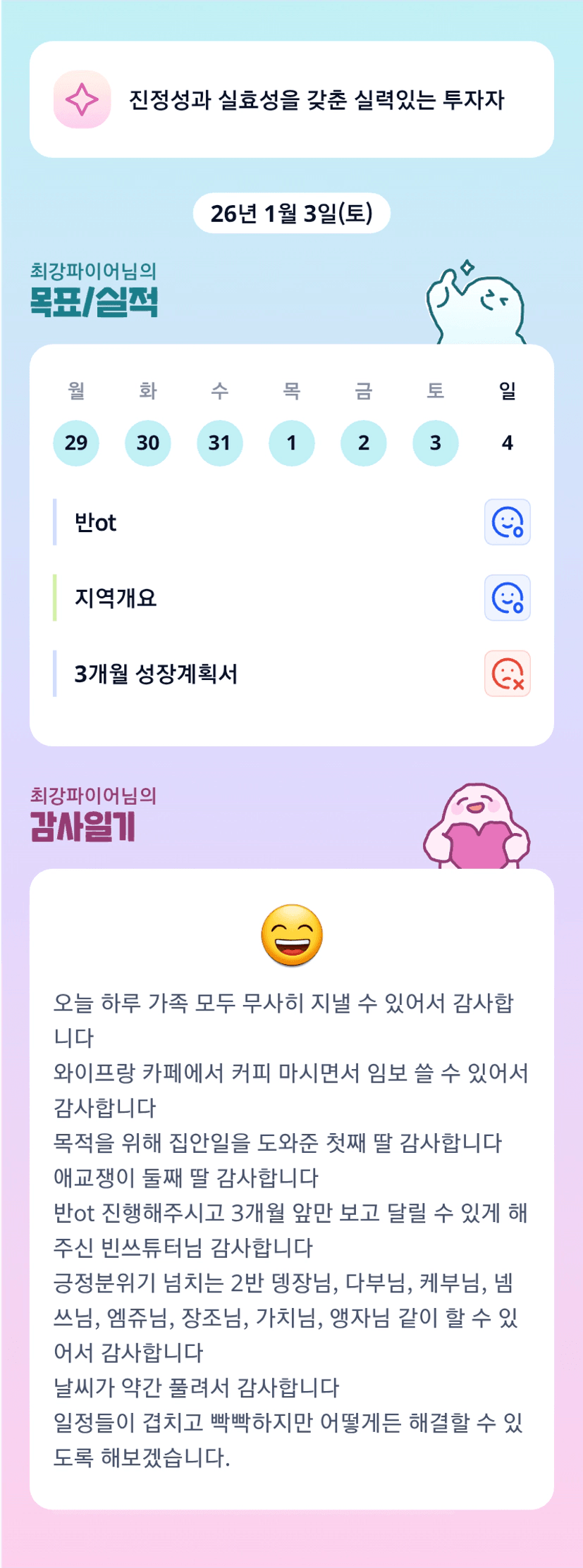 튜터님의 튜터님과 함께 하시는군요~ㅎㅎ 엔젤 튜터님과 3개월이라니 부럽습니다. 월학 화이팅입니다~~^^