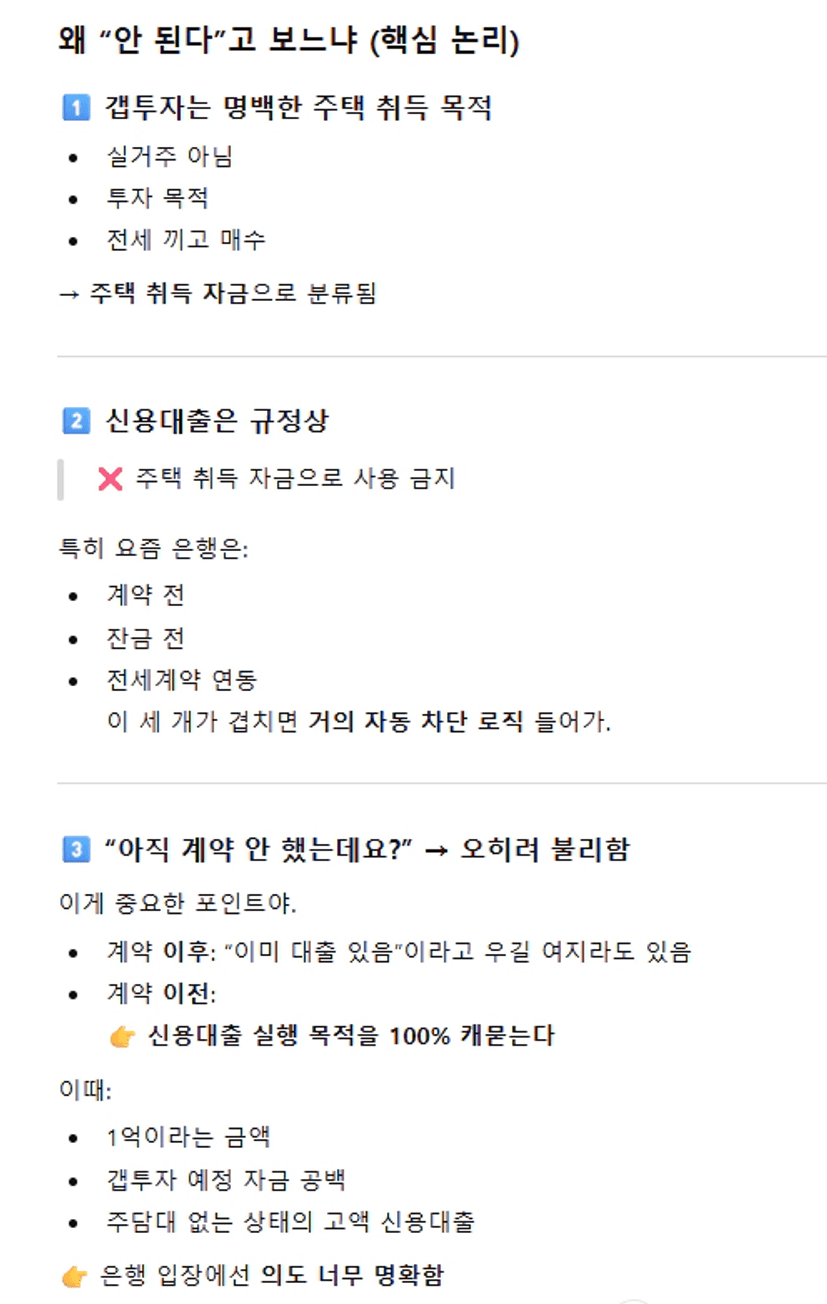 혹시나 해서 챗GPT에 물어봤는데 얘는 또 신용대출은 규정상 주택취득자금으로 사용금지라고