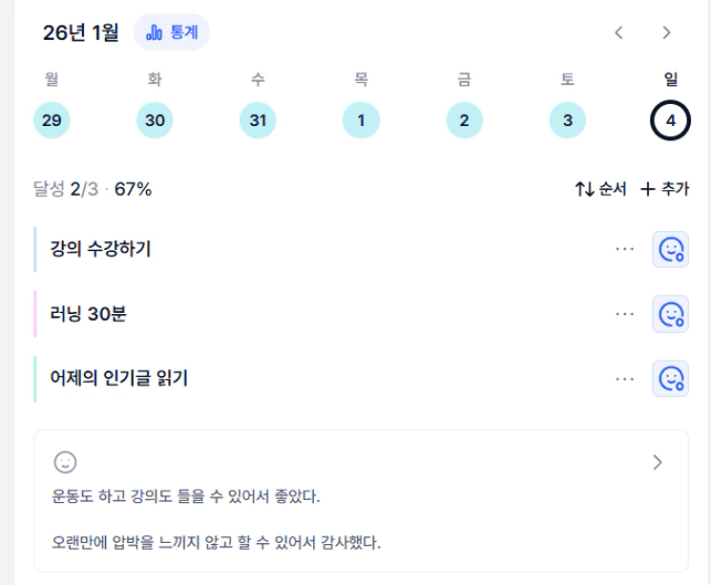 2️⃣ 이번 주 목실감을 작성하면서 느낀점과 더불어 한 주 스스로 어떻게 지냈는지 간단한 회고를 적어보아요 :)