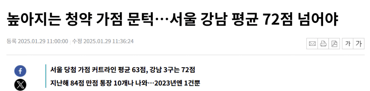 실제로 서울의 청약 커트라인은 상당히 높은 편입니다.