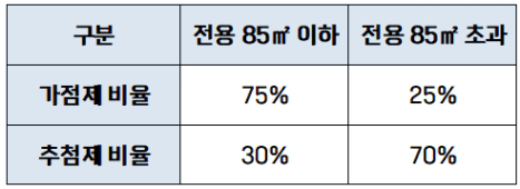 전략포인트: 전용면적이 작을수록 가점제 비중이 높고, 클수록 추첨제 비중이 높습니다.
