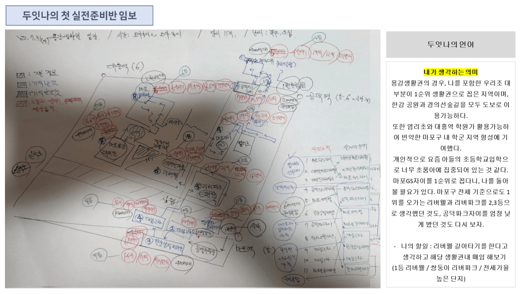 “중요한 것은 답을 맞추는 것이 아니라 사람들이 이 동네를 왜 좋아하는 지를 정리해 보는 것이다.”