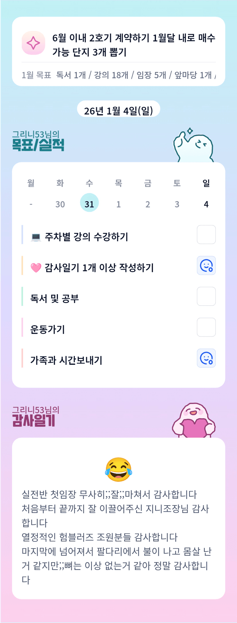 그리니님 무리하지 말기!! 고생하셨습니다!