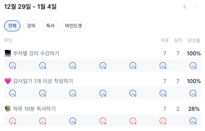 다음 날 부터 다시 새로운 마음으로 목실감 작성하기를 꼬옥 해주시기 바랍니다!