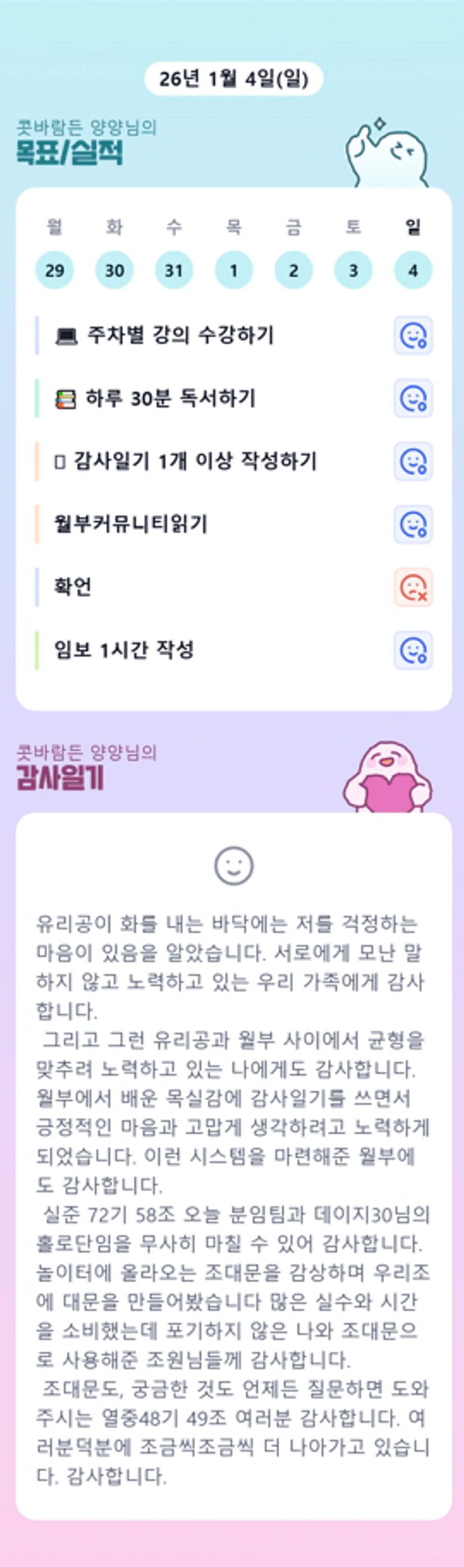 저도 오늘 유리공과 부딪혀서 울적했는데 ㅜㅜ 감사일기보니 공감돼서 위로받는기분이네용.. 함께 힘내봐요! 화이팅!