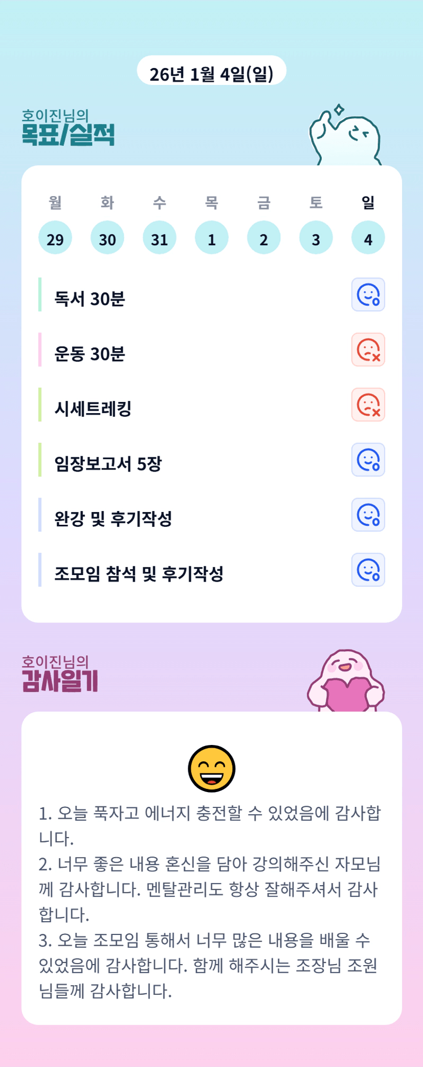 호이진님 착착착 해내시는 하루 넘 고생 많으셨어요♡