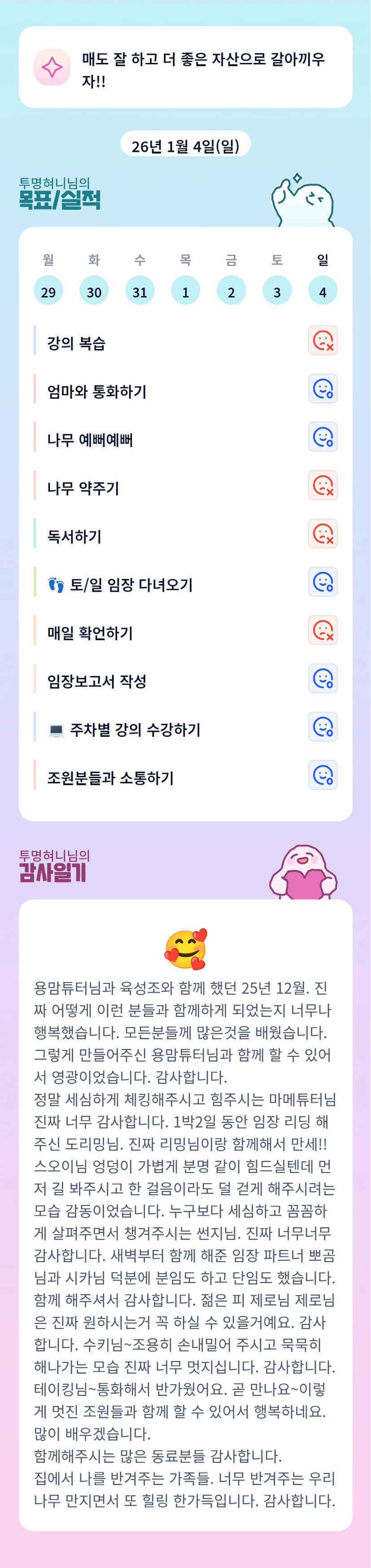 감사한일이 한가득이신 혀니조장님 ㅎㅎㅎ 본받고 갑니다!! ><