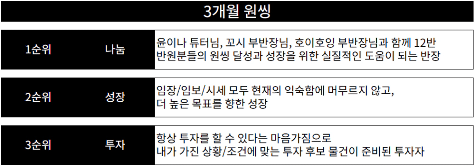 그리고 첫 실전반 조장과 첫 월부학교를 경험하며, 높은 수준의 환경의 중요성을 배울 수 있었습니다.
