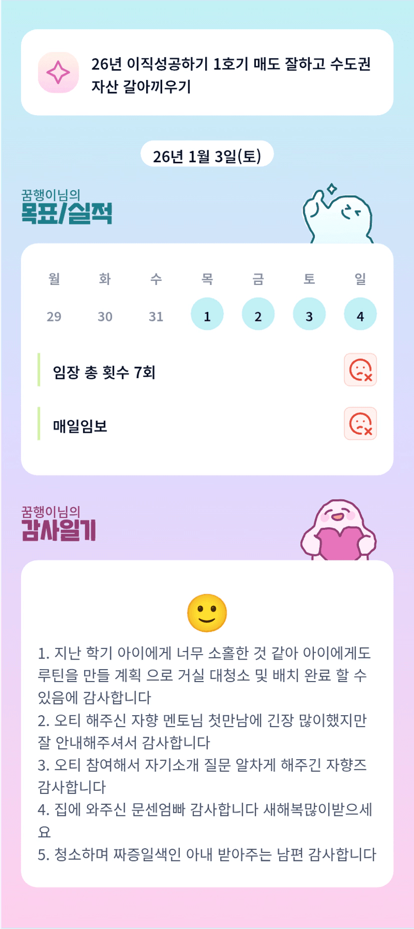 행이님 임장, 나눔, 가정까지 잘 챙기는 모습 정말 리스펙이에요🤍 진짜 멋지다 ❄️❄️❄️
