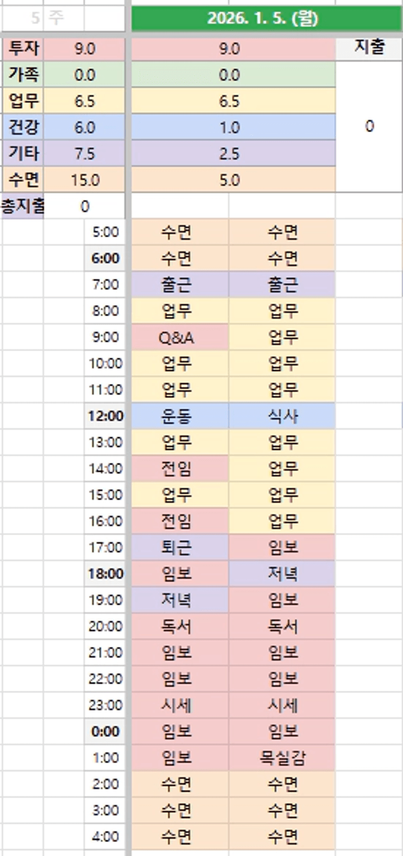 ○ 1월 5일(월) 계획