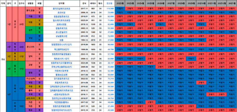 성산,의창구는 대장과 신축이 많이 올랐으며