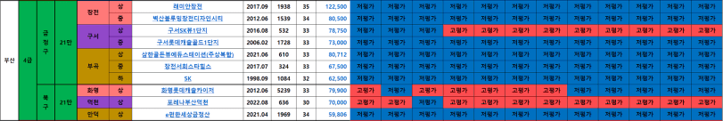 대장단지 및 랜드마크 일부만 고평가로 보여지고 있고