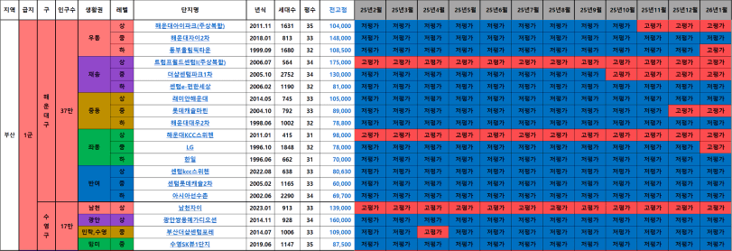 해운대 : 우동 동부올림픽, 좌동 LG 고평가