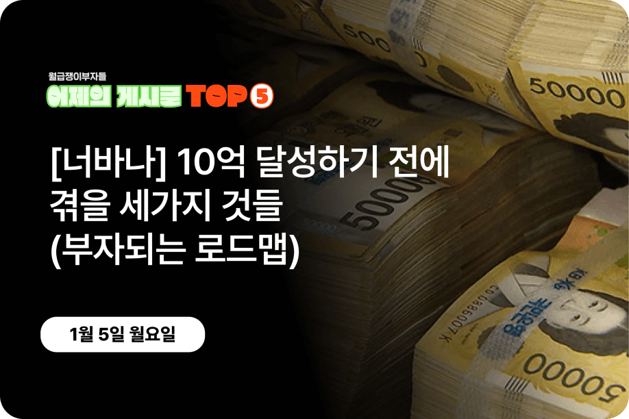 [어제의 게시글 Top5] [너바나] 10억 달성하기 전에 겪을 세가지 것들(부자되는 로드맵)