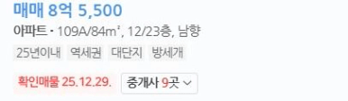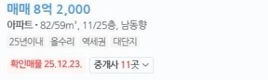 호가가 실거래가보다 훨씬 높게 형성된 경우가 많습니다.
