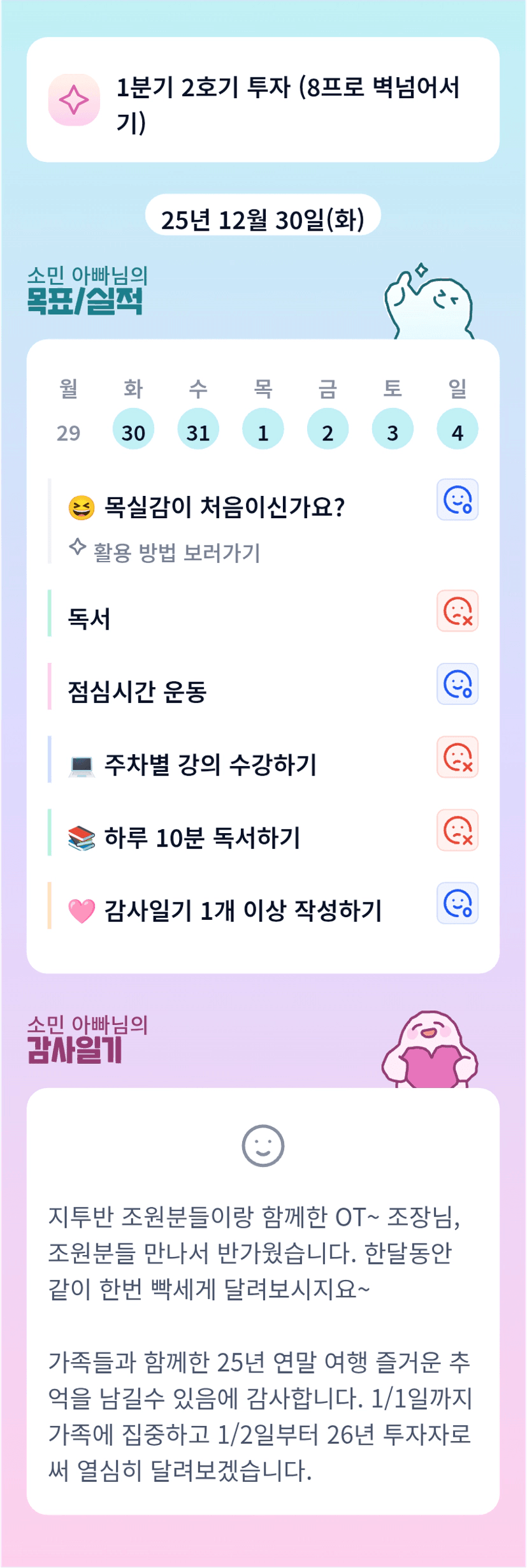 소민아빠님 한달동안 잘 부탁드립니다. 우리함께 화이팅해보아요!