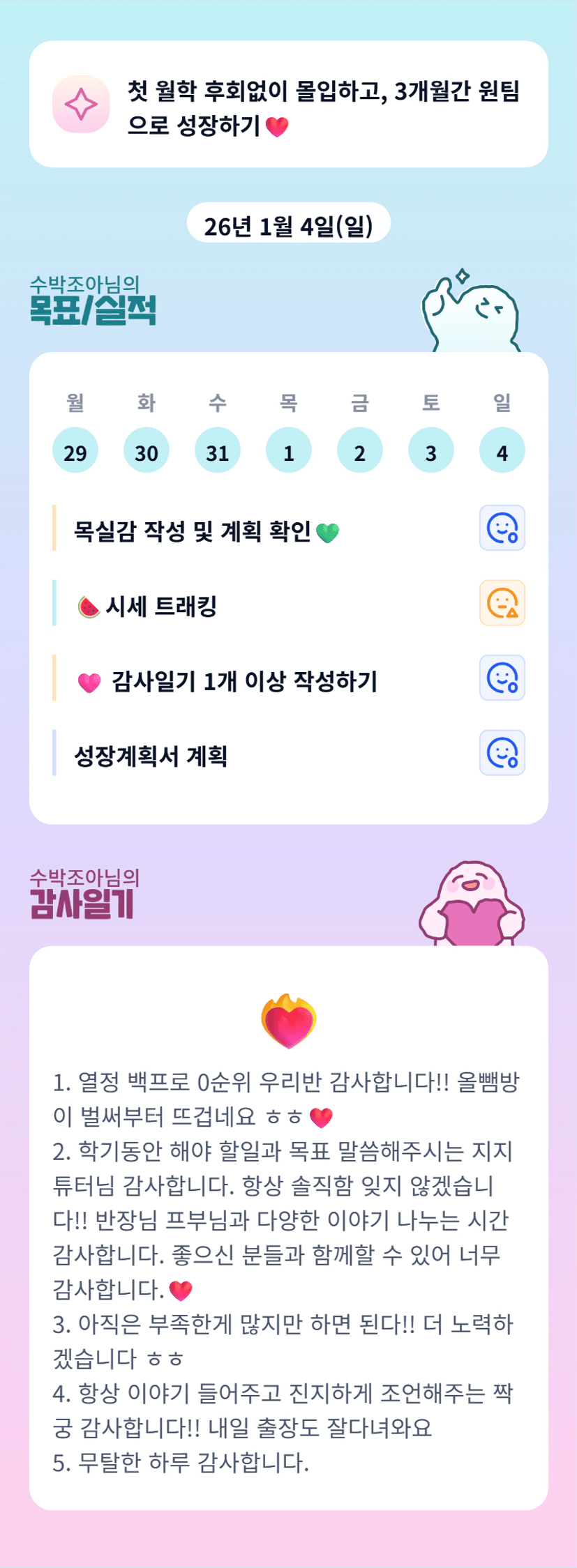 부족한게 많기는요?? 수부님 긍정의 에너지+텐션이면 모든지 할 수 있죠 ㅎㅎ 화이팅!!