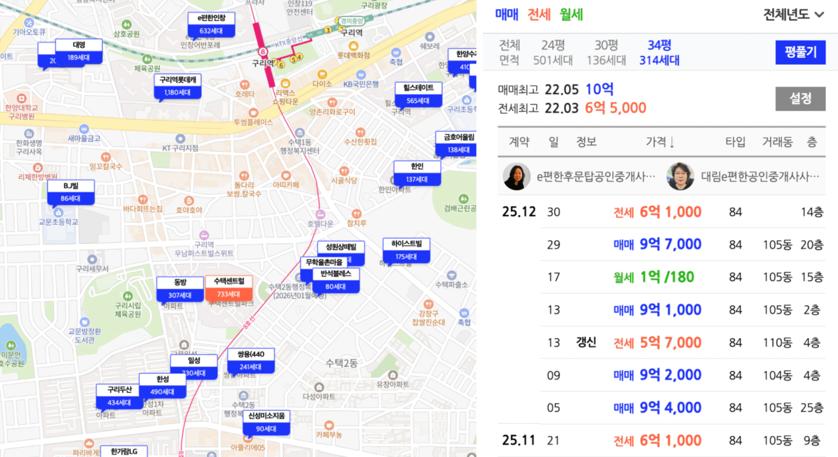 2020년식 따끈따끈한 신축이지만 수택이라는 지역 자체가 구리 시민들에게는 아직 '비선호'의 향기가 짙은 곳입니다. '아놔 거기 신축 들어와도 수택은 절대 안가' 라는 뉘앙스가 있는 곳이기 때문에 오히려 그게 기회가 될 수 있다는 점. 물론 9.7억이라는 가격은 전고점(10억)에 가깝습니다만 신축이라 전고 거래가 없는 것일 뿐...!!