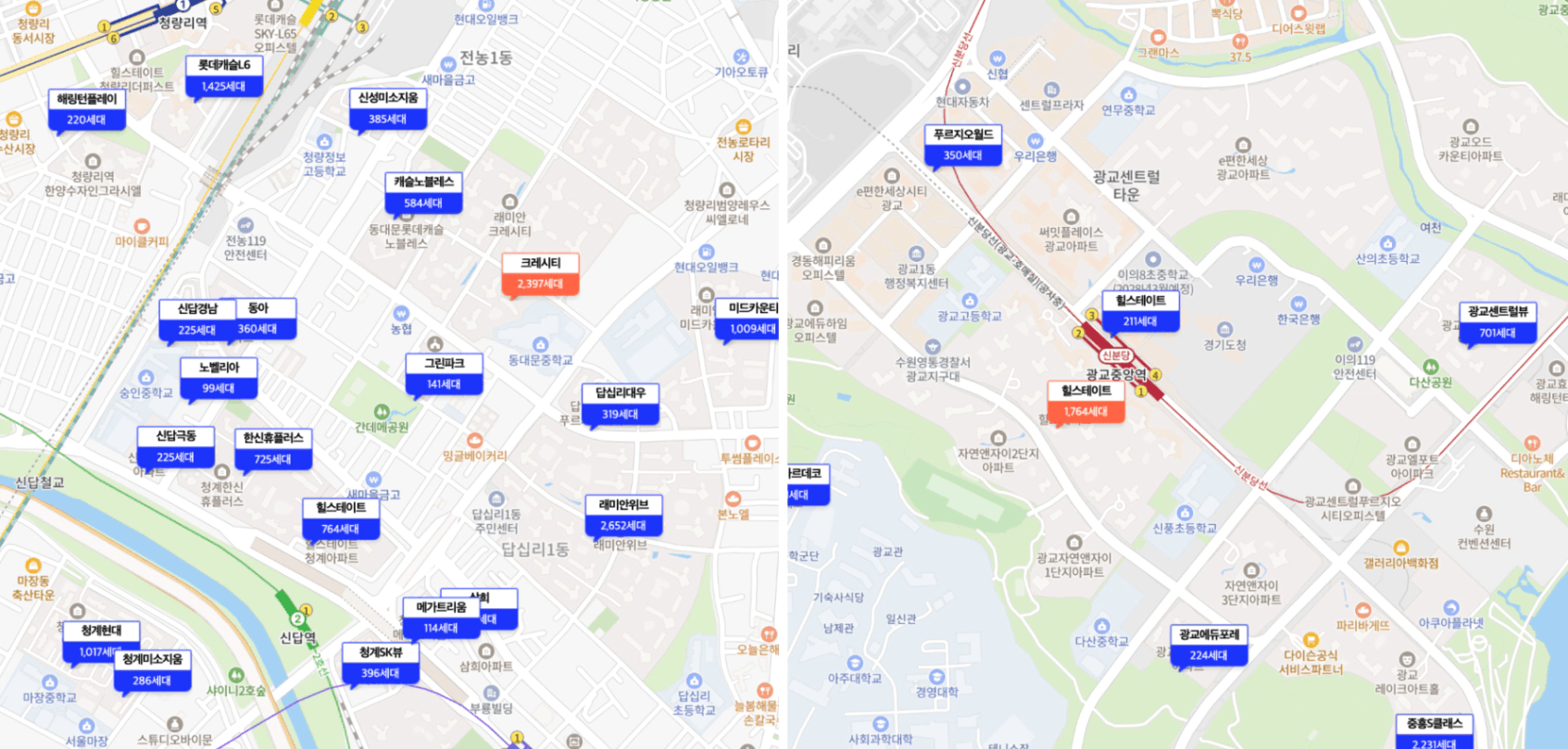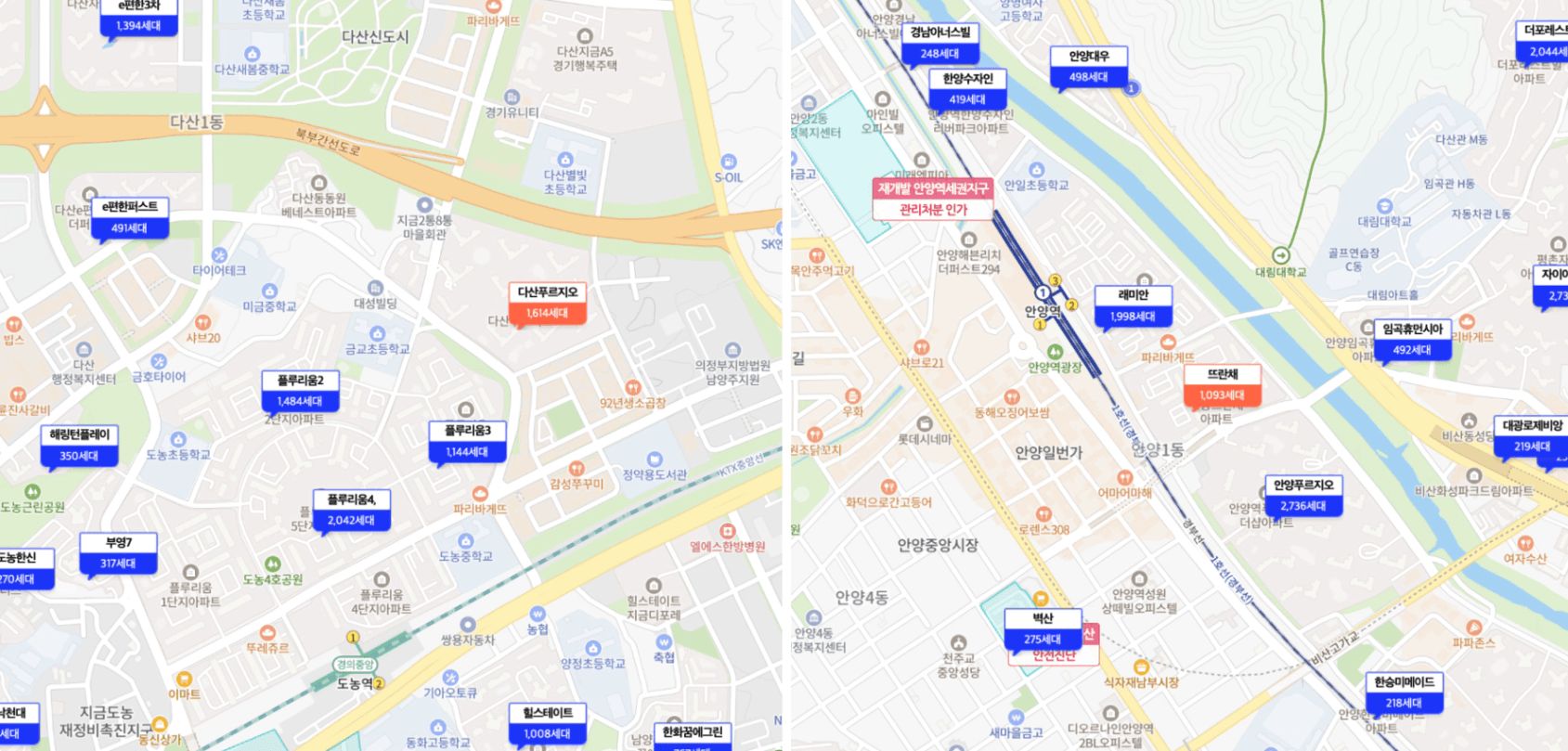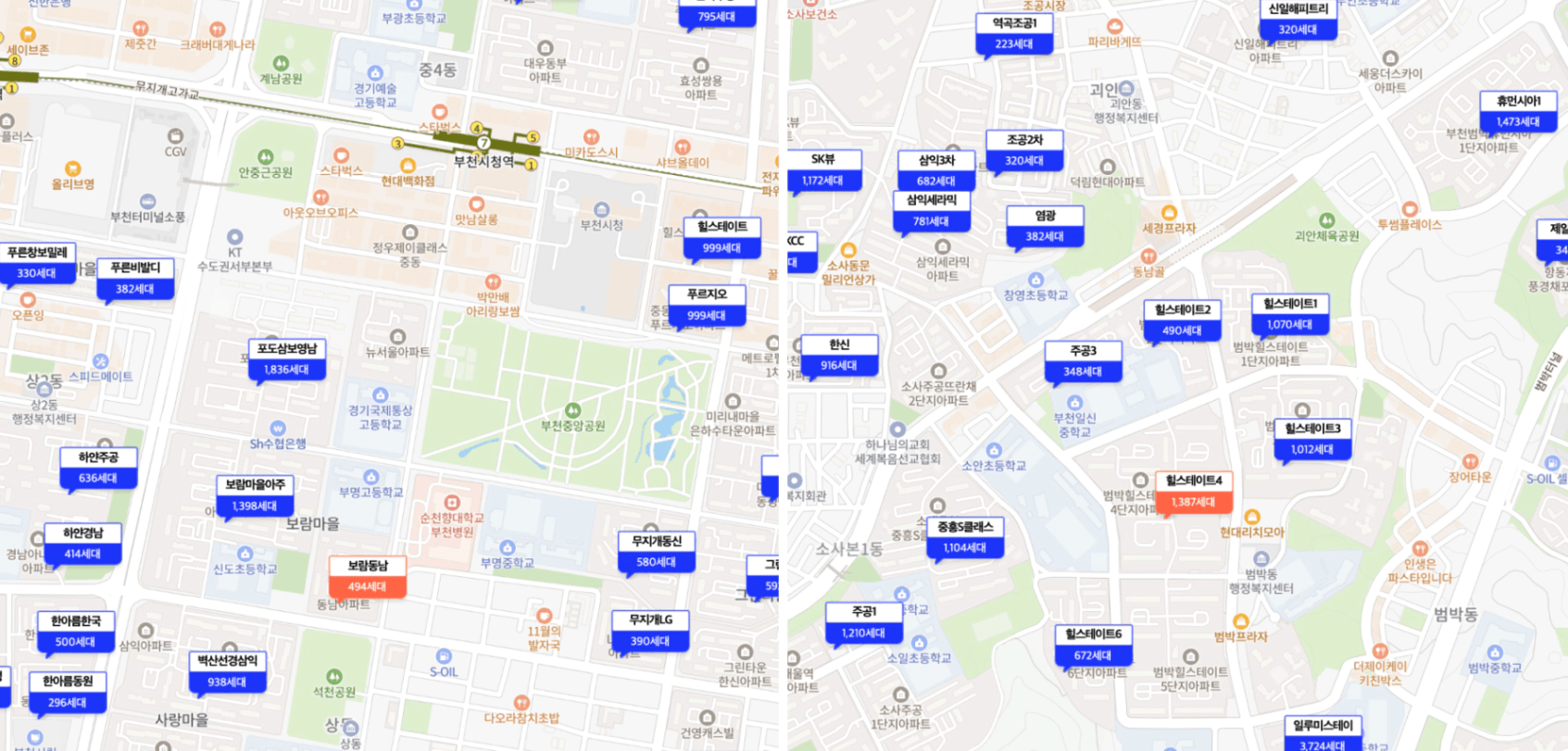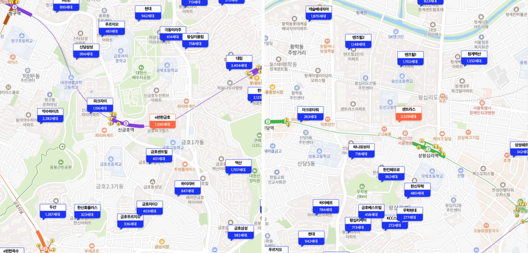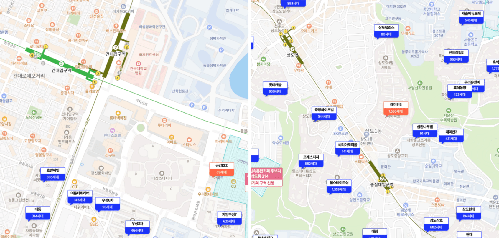 이 중에 영등포구 양평역미소지움, 동작구 벽산 아파트는 200세대가 안 되는 작은 아파트 단지이기 때문에 스킵하겠습니다.