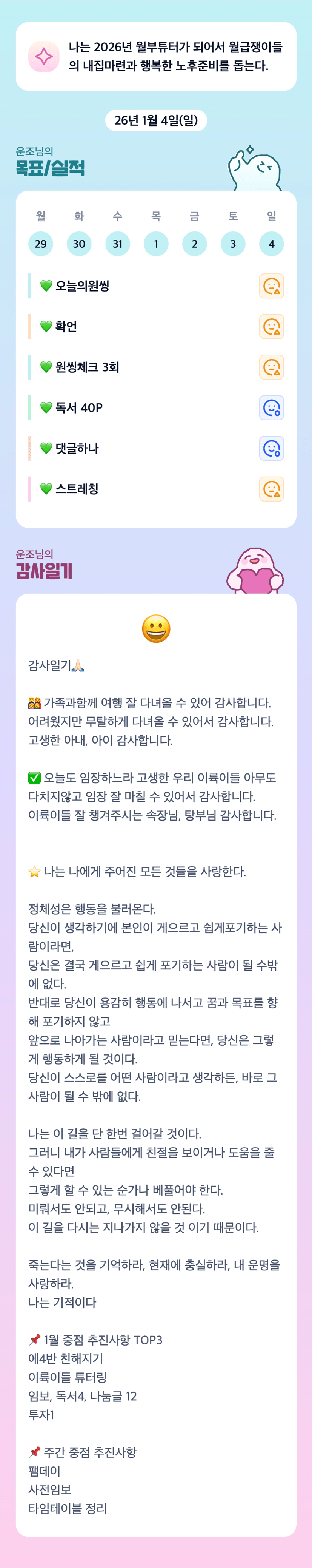 힘들어하는 동료들을 돕고, 때로는 함께 웃고 또 함께 울면서 해나가려고 합니다.