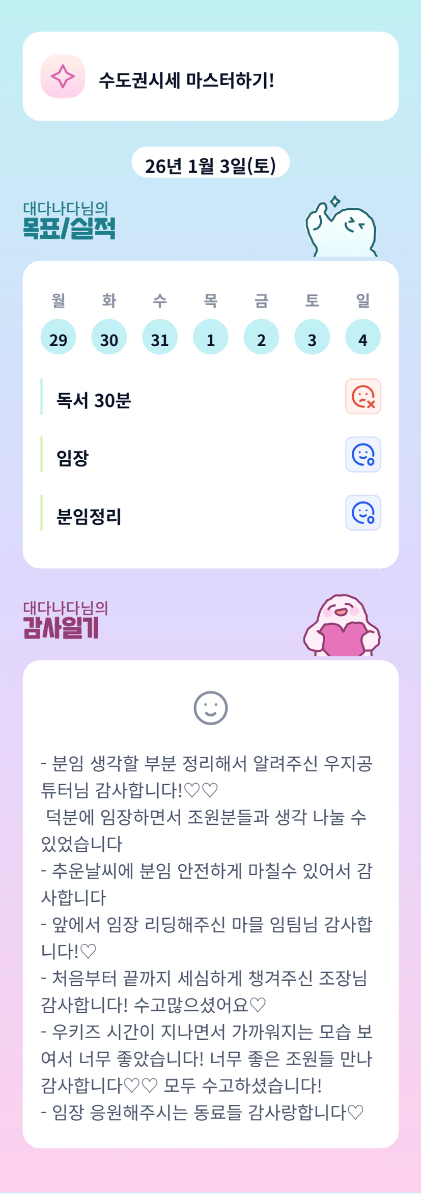 나다님의 집중케어로 행복하게 임장했습니다🩷 수고 엄청 많으셨어용!!! 이번주도 화이팅!!