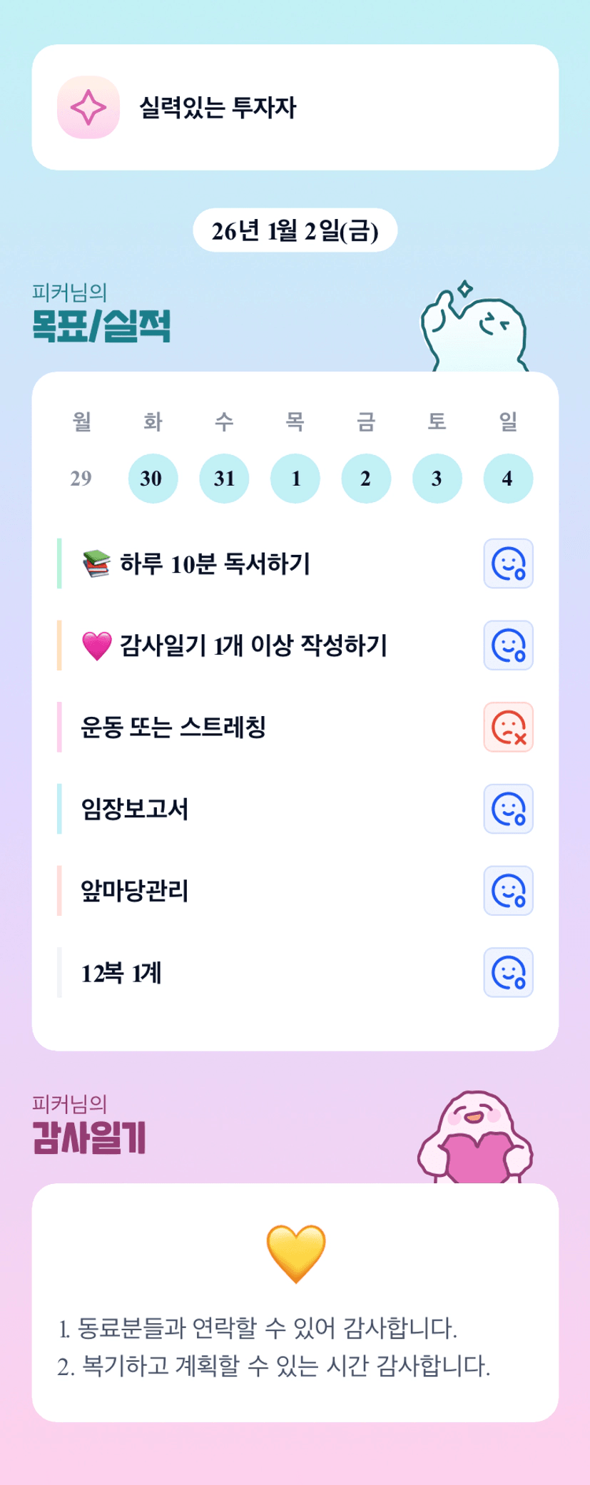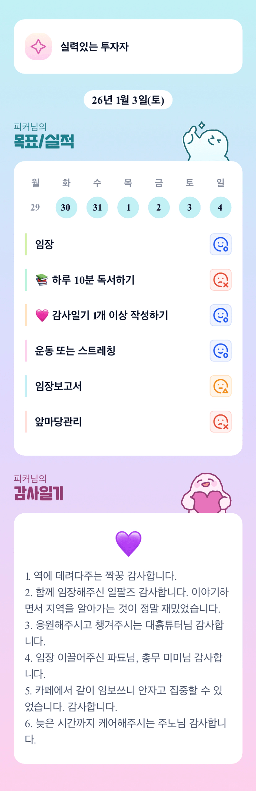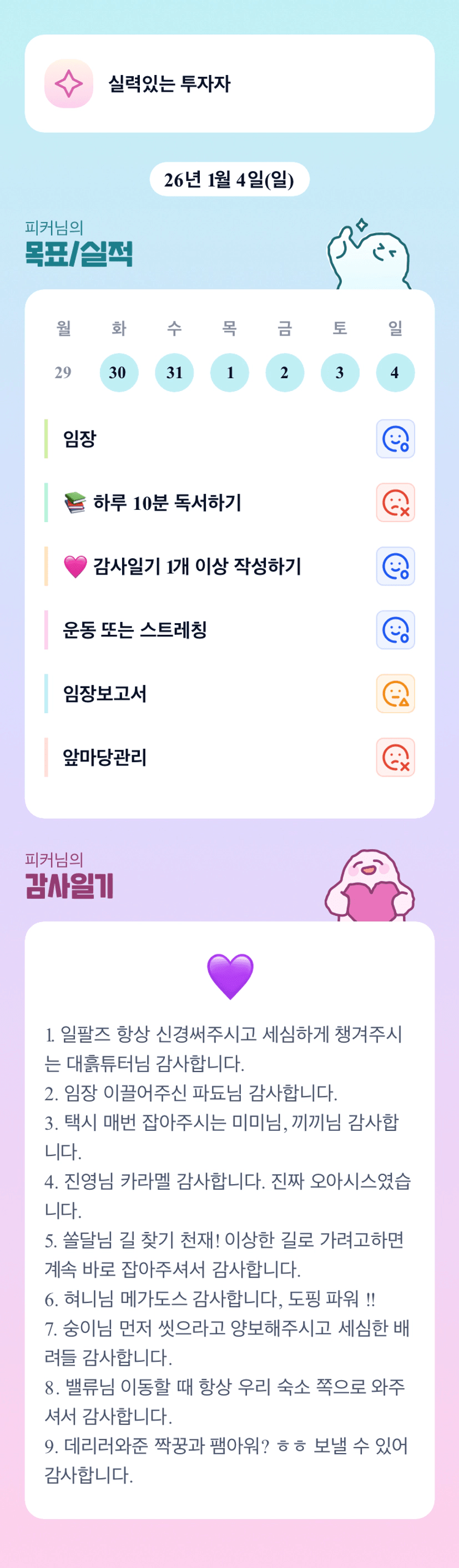 피커님 잘 지내는 게 감사일기에 보이는군용