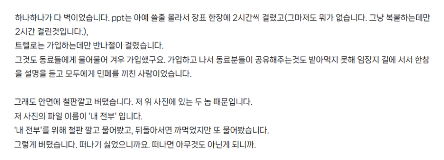 위 글은 과제로 제출하는 후기 외에 처음으로 남을 위해 쓴 글입니다.