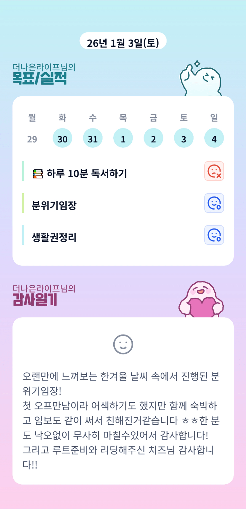 한주간 함께해서 즐거웠습니다 나은님~!! 담주도 화이팅~!!