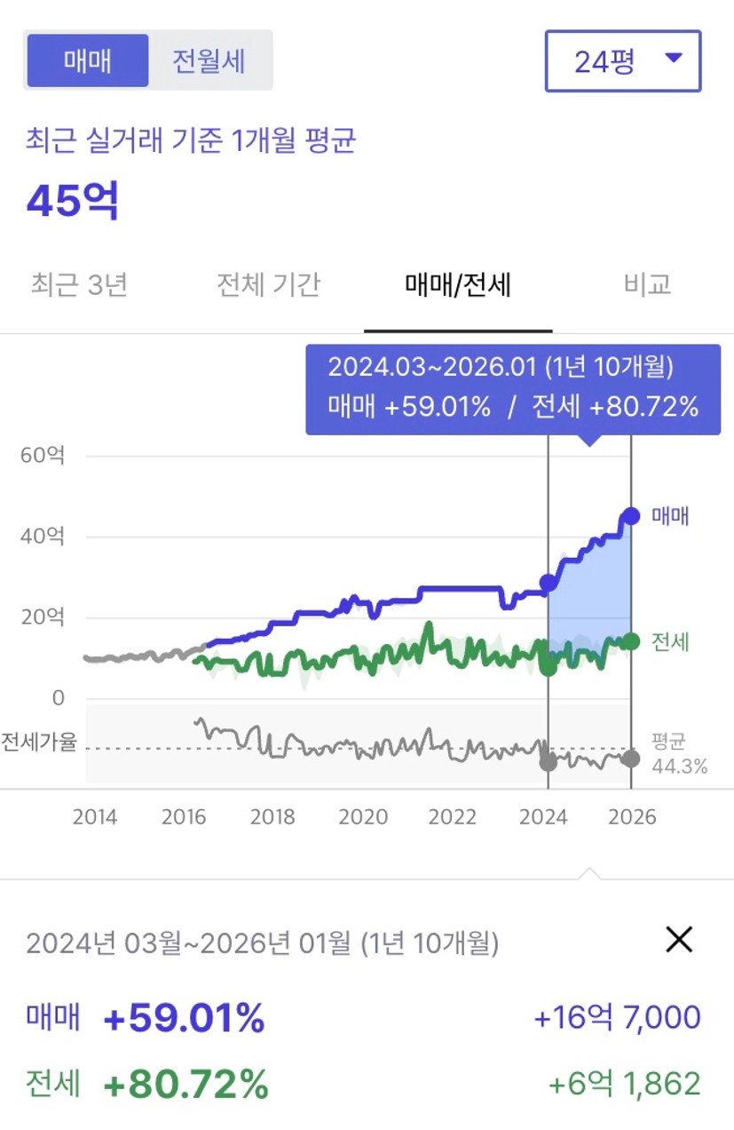 선호 매매 40~45억대, 전세 14~15억대
