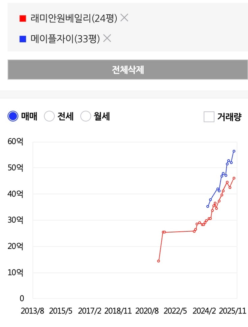 메인 매매 33억대, 전세 13억대