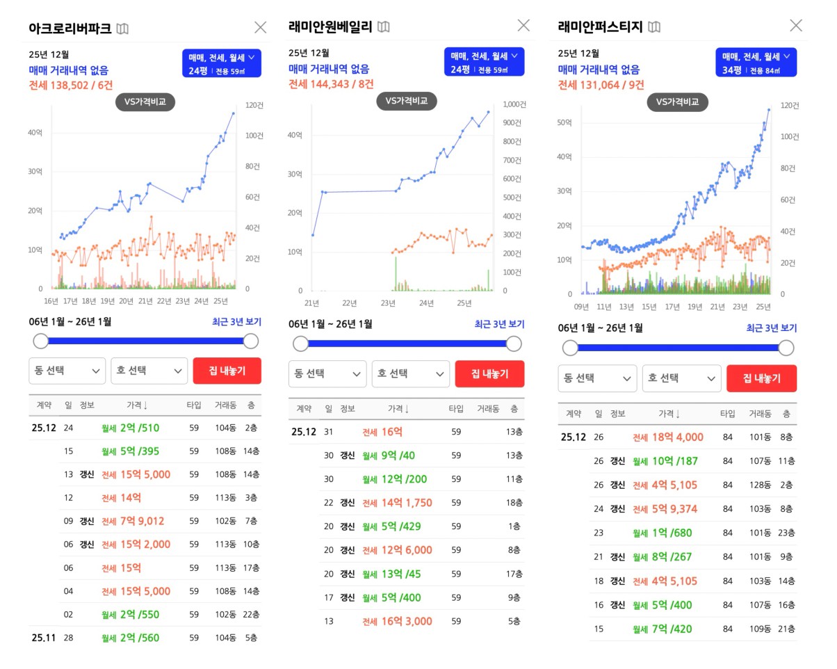 선호 매매 25억대, 전세 11~14억대