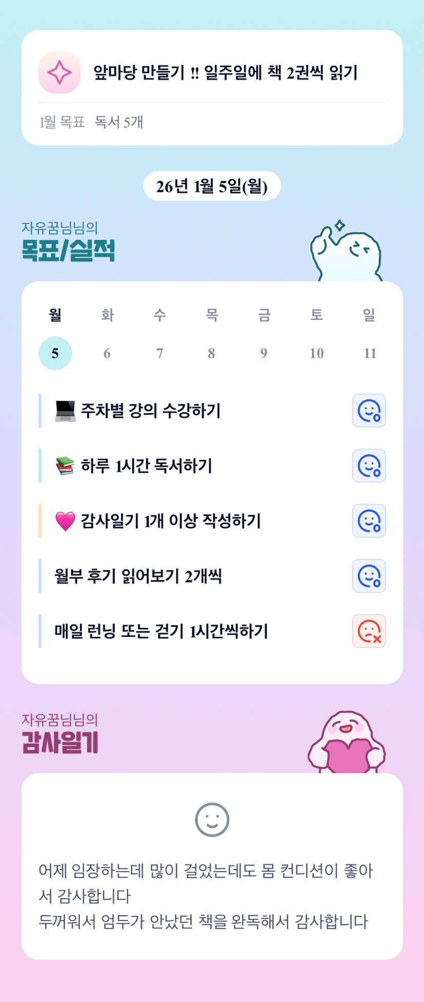 컨디션이 좋아 다행이네요! 월요일 고생하셨습니다 이번주도 화이팅!!