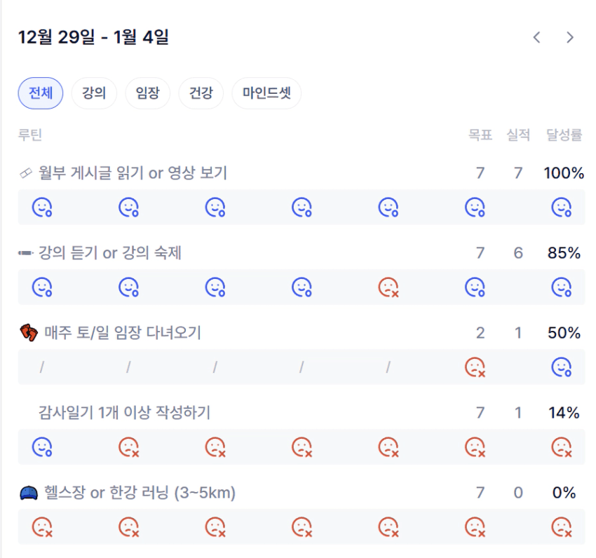 2️⃣ 이번 주 목실감을 작성하면서 느낀점과 더불어 한 주 스스로 어떻게 지냈는지 간단한 회고를 적어보아요 :)